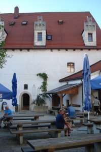 Die Jugendherberge liegt im Südwesten auf dem Kuhberg. Da das wiederum 50 Höhenmeter Aufstieg sind, erwägen wir doch, in der JH Abendessen zu nehmen.