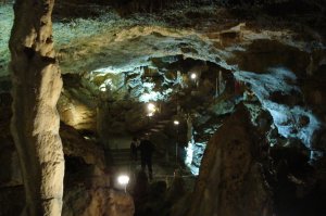Nach dem Abstieg über eine langen Treppe kann man selbst die Höhle mit ihren diversen Nebengängen erkunden.