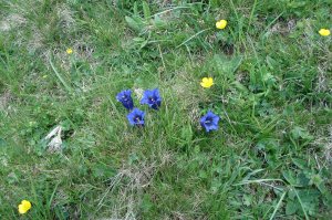 Die letzten 250 Höhenmeter durch schöne Bergwiesen kann Nina wieder selber gehen; der Gipfel ist eine unerwartet flache Blumenwiese.