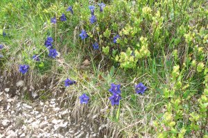 Der Monte Misone steht markant über dem Lago di Tenno nordöstlich von Riva. Es führt ein Weg vom Passo del Ballino (764 m) im Norden und einer von Calvola (Ville del Monte) von Süden zur Malga di Tenno. Wir sind den nördlichen Weg gegangen, zuerst Fahrstraße, dann ein Pfad, der sich einen steilen Berghang hochwindet. Von 1400 bis 1600 m war der Weg durch Laub unangenehm rutschig. Zeit bis Malga di Tenno ca. 2 Stunden.