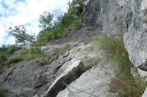 In [3] beschrieben. Führt über sehr lange, luftige Leitern auf die Cima SAT (1276 m). Abstieg von der Cima SAT das erste Stück recht luftig, dann vorsichtig auf einem kleinen, steilen Pfad auf der Nordseite des Bergs wieder zum Ausgangspunkt.