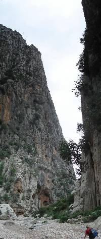 Unser eigener Track im gpx-Format: Download oder anzeigen Fita del Ram (833 m)Die Fita del Ram ist in den Führern von Rother und Hikeline ausführlich beschrieben. Bei Rother (Tour Nr. 13) ist nur eine Aufstiegsvariante beschrieben, im Hikeline-Führer (Tour Nr. 15) zwei unterschiedliche für Auf- und Abstieg. Die Aufstiegsroute ist dabei deutlich länger, dafür völlig ohne Schwierigkeiten. Auf der direkten Route dagegen ist direkt am Gipfel eine kurze Felsrinne zu durchsteigen (2 m). Unser eigener Track im gpx-Format: Download oder anzeigen Torrent de PareisDer Pfad von Escorca bis hinunter auf den Talboden war in gutem Zustand; für die genaue Wegfindung war hier auch der GPS-Track des Hikeline-Führers hilfreich. In der Schlucht selbst gibt es keinen GPS-Empfang, und die Genauigkeit würde auch nicht ausreichen, um damit die Route zu finden. Schließlich ist es in dem grobblockigen Gelände entscheidend, ob man zwei Meter weiter rechts oder links den besseren Durchgang findet. Die Route ist mit kleinen schwarzen Pfeilen markiert. Häufig sind die rundlichen Felsen durch kleine, eingehauene Stufen etwas entschärft; die Tritte sind aber durch die häufigen Begehungen schon etwas rutschig. Immerhin können sie aber als Orientierung dienen, wo die Route verläuft. An den drei oder vier schwierigsten Passagen sind Ösen eingelassen, an denen man ein Seil durchziehen kann; eine Reepschnur von 8-10 Metern Länge leistet hier gute Dienste. Man kann sich entweder an den Händen herunterhangeln oder auch vorsichtig im Dülfersitz abseilen. Richtig elegant sieht aber beides nicht aus, weil man durch die Felsspalten abgedrängt wird. Die Tour ist in allen drei Führern beschrieben: [Hikeline]27, [Kompass]42, [Rother]31. Unser eigener Track im gpx-Format: Download oder anzeigen Puig d'Alaró (821 m)Am Puig d'Alaró ist man nicht alleine, die Bugruine wird offenbar gerne besucht. Die meisten "Wanderer" scheinen jedoch zum Restaurant Es Verger oder sogar noch weiter hochzufahren, so dass dann nur noch 100-200 Höhenmeter zu Fuß verbleiben. Wir sind von Alaró aus aufgestiegen (ca. 600 Höhenmeter), dabei verläuft ein ziemliches Stück auf der schmalen Straße nach Es Verger. Dieser Aufstieg ist in [Kompass]28 beschrieben. Unser eigener Track im gpx-Format: Download oder anzeigen Avenc de Son Pou