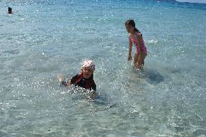 Heute sind wir alle am Strand. Das Wasser ist zwar nicht so wahnsinnig warm zum Baden, Nina hat mit ihrem Neoprenanzug aber keine Hemmungen.